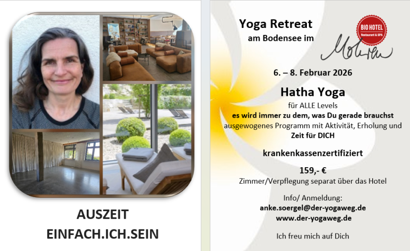 Ein Wochenende voller Hatha Yoga, fließender und sanfter Bewegungen, Yoga Nidra, Erholung, Genuss und schönen Momenten in herzlicher Atmosphäre in der Nähe des Bodensees.